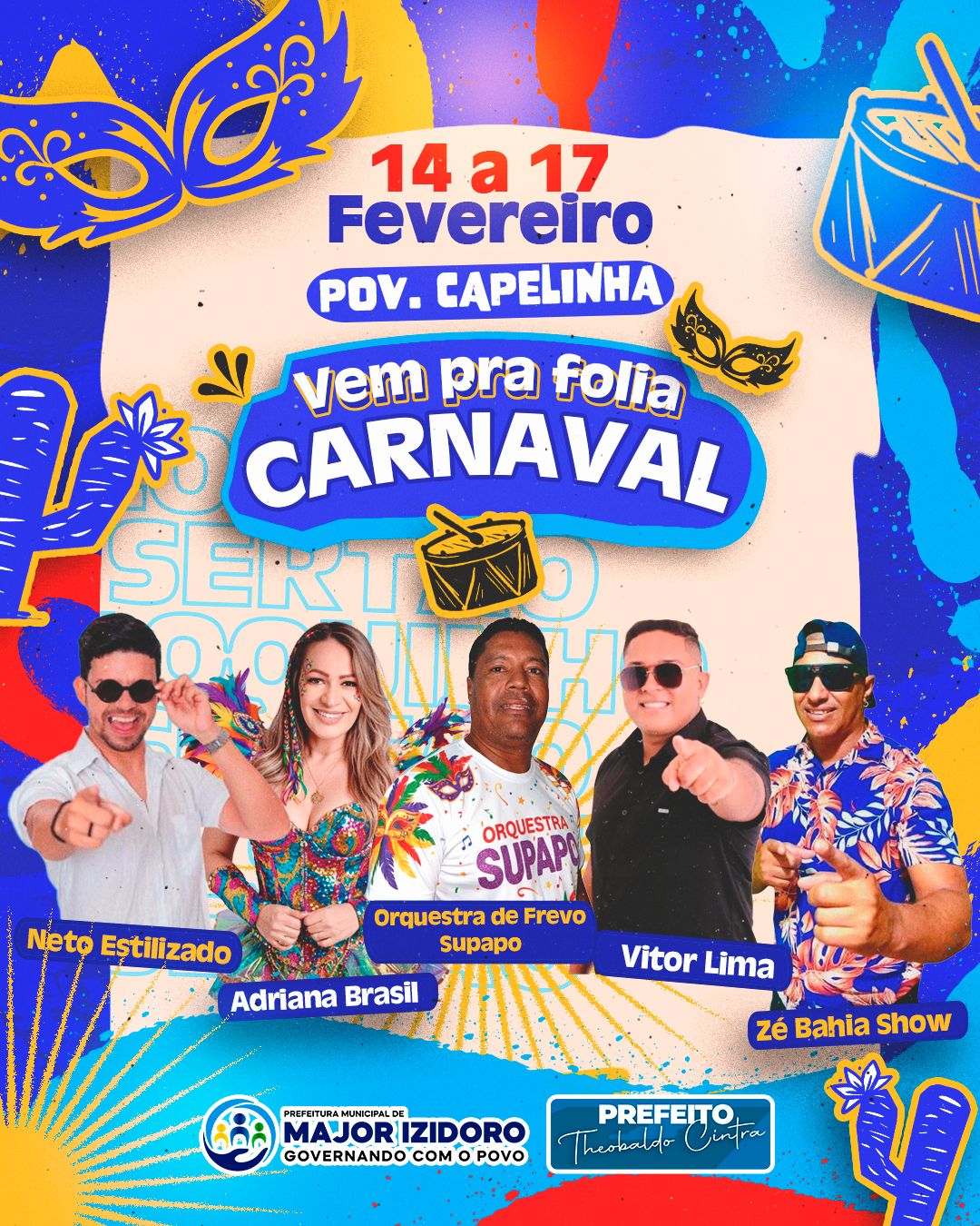 O clima de festa já tomou conta do Povoado Capelinha, que se prepara para viver quatro dias de muita animação durante o Carnaval, entre os dias 14 e 17 de fevereiro. O evento promete reunir moradores e visitantes em uma programação marcada por música, dança e celebração da cultura popular.
