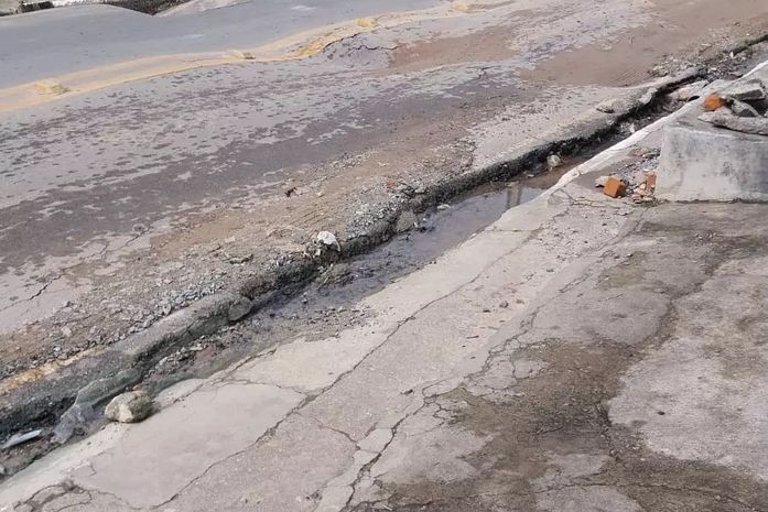 Registros feitos na área mostram que os cedimentos ocorreram principalmente nas laterais da pista, provocando buracos e desníveis ao longo da rua. A situação oferece riscos tanto para motoristas quanto para pedestres, devido à possibilidade de acidentes.