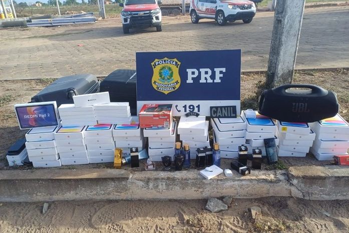 De acordo com a PRF, por volta das 16h, agentes deram ordem de parada a um veículo e, durante a abordagem, os ocupantes, três homens, informaram que estavam voltando de Foz do Iguaçu/PR, onde teriam ido passear e adquirido cerca de R$150.000,00 em mercadorias, com destino a Recife/PE.