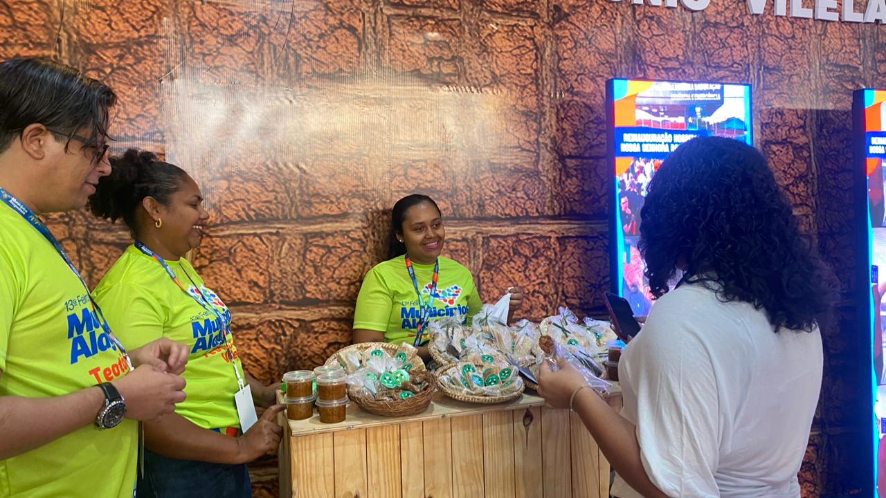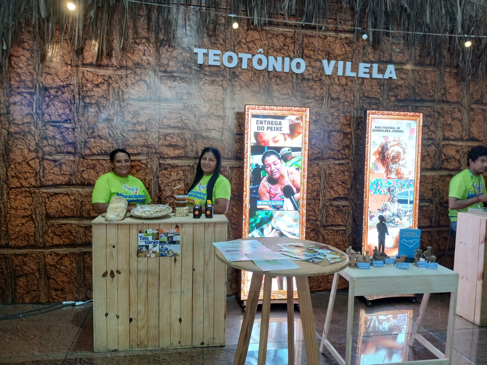 Em um espaço bem estruturado, aconchegante e marcado pela ambientação que remonta a simplicidade das casas de taipa, característica dos interiores alagoanas e móveis de pallet, o stand da Terra do Menestral das Alagoas, agregou , em um só lugar, parte das riquezas produzidas no chão do município de Teotônio Vilela e da gestão, Peu Pereira.