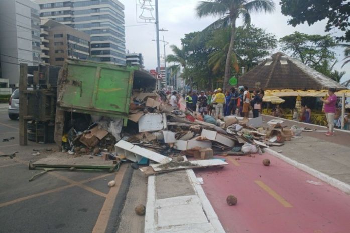 Agentes de proximidade do Programa Ronda no Bairro prestaram assistência ao motorista de um caminhão de coleta que tombou na tarde desta quarta-feira (28), na Avenida Álvaro Otacílio, no bairro de Ponta Verde, em Maceió.