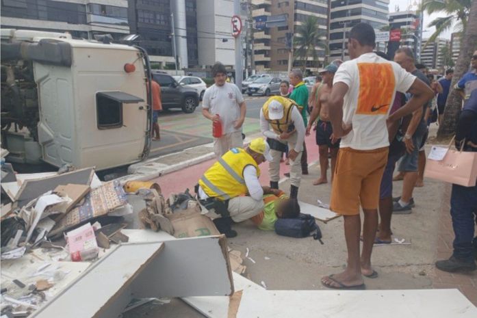 A guarnição realizava patrulhamento preventivo na via quando avistou o acidente e se deslocou imediatamente até o local, sendo a primeira equipe a chegar. Com o apoio de populares, os agentes conseguiram retirar o motorista de dentro do veículo, que ficou tombado em meio a grande quantidade de poeira e entulhos espalhados pela avenida e parte do calçadão. O caminhão tombou ao sair da Avenida Sandoval Arroxelas e virar à esquerda na Álvaro Otacílio, para ir no sentido litoral norte.