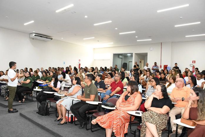 Gestores, coordenadores, professores, técnicos da Semed, auxiliares de creche, profissionais de apoio, articuladores de ensino, psicólogos, assistentes sociais, manipuladores de alimentos, disciplinários escolares, secretários, assistentes de Secretaria, setor de matrícula e monitores de transporte escolar participaram da palestra realizada na quarta-feira (28), palestra "Nas diferenças a igualdade se constrói: educação, saúde e bem-estar em equilíbrio", ministrada pelo psicólogo Paulo Roberto Mendes.