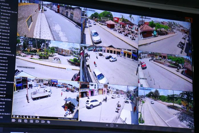 São câmeras com tecnologia de ponta, funcionando 24h, instaladas nas entradas, nos pontos de maior circulação e em todos os prédios públicos.