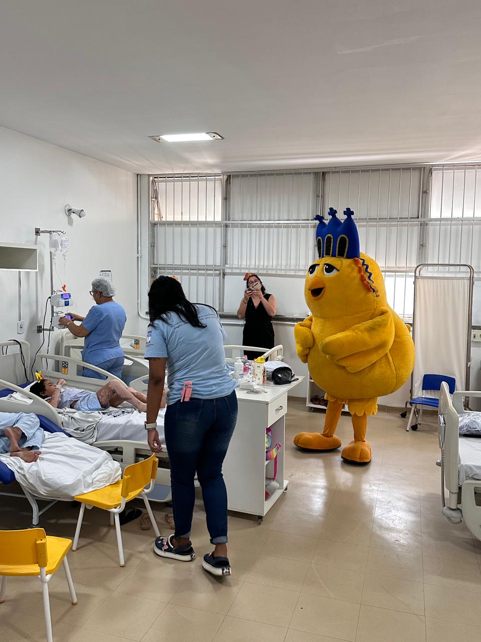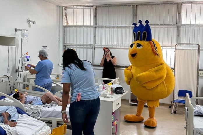 No setor oncológico, a visita provocou forte emoção em uma paciente, que se comoveu ao relembrar momentos do passado. Já na pediatria, o clima foi de pura alegria, com fotos, cantorias e abraços no mascote do bloco, envolvendo crianças, familiares e profissionais.