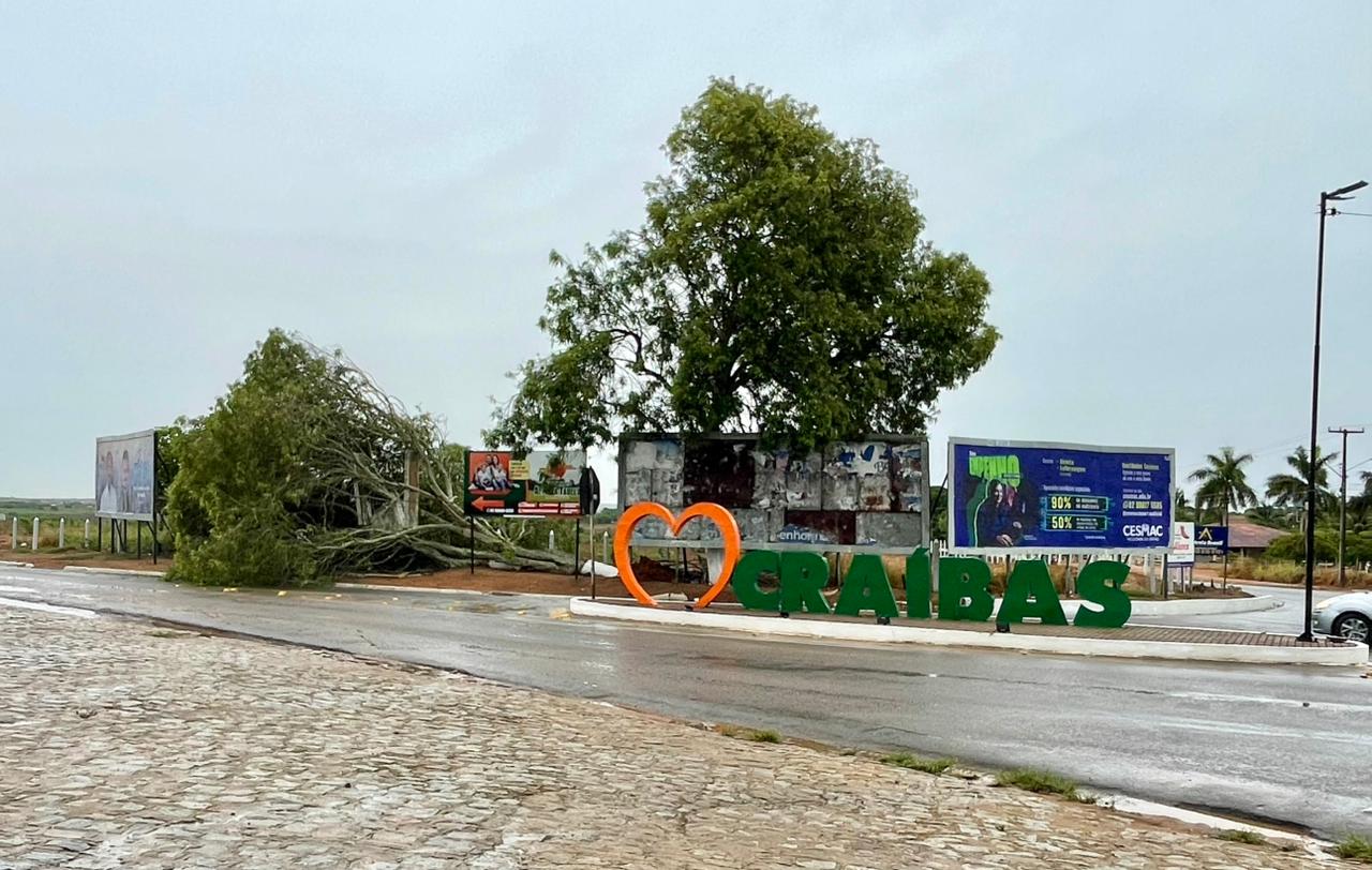 No trevo de acesso ao município de Craíbas, o temporal causou a queda de uma árvore de grande porte, com parte dos galhos alcançando a rodovia.