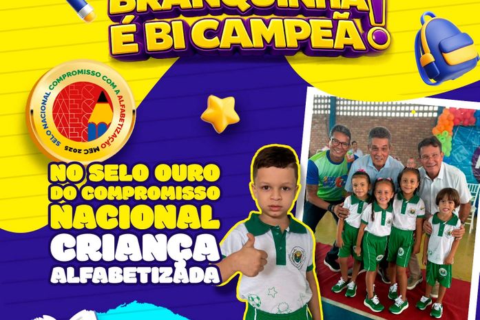 Pelo segundo ano consecutivo, a Prefeitura de Branquinha, através da Secretaria de Educação, recebeu o selo da categoria “Ouro” pelo Compromisso Nacional Criança Alfabetizada. O selo é uma forma de reconhecimento que valoriza as boas práticas em ações voltadas à alfabetização das crianças e à diminuição das desigualdades educacionais.