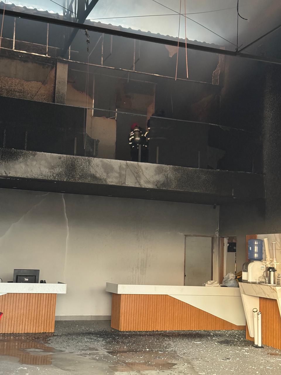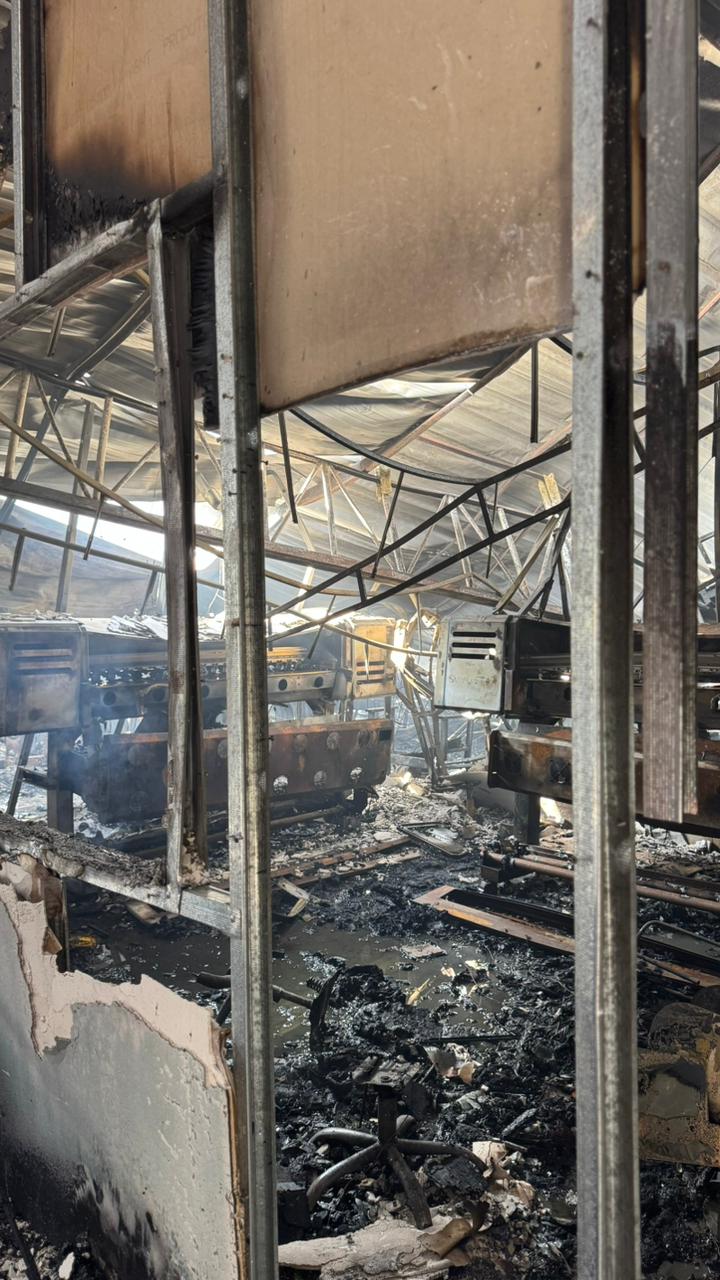 Imagens feitas após o controle do incêndio mostram o tamanho do prejuízo. Parte do telhado metálico cedeu com o calor intenso, estruturas de ferro ficaram retorcidas e o interior do prédio foi tomado por fuligem e destroços. Máquinas de costura e equipamentos industriais aparecem carbonizados, alguns parcialmente derretidos. No chão, há acúmulo de água misturada a cinzas, restos de tecidos queimados e móveis destruídos.