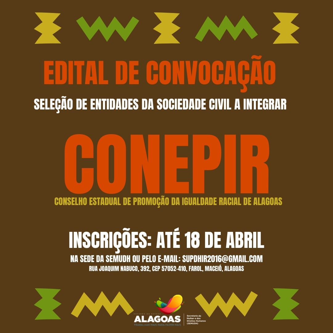 Mas, saiba vocês que nos ultimos anos, o CONEPIR , em Alagoas passou por um processo de inexistência consentida, com o amém de muitos pares e instituições do movimento negro e do poder público.