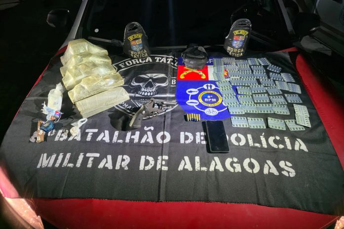 Já em Penedo, no conjunto Vale São Francisco, após denúncia de tráfico e porte ilegal de arma, policiais do 11º BPM abordaram um homem que admitiu estar armado. Foram apreendidos um revólver calibre 32 com seis munições intactas, um simulacro de pistola e uma bolsa com drogas fracionadas.