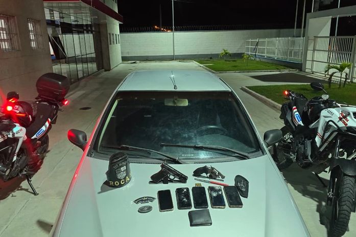Um homem foi preso e, com ele, a guarnição de Rondas Ostensivas com Apoio de Motocicletas (Rocam) apreendeu um revólver calibre 32 com quatro munições intactas, um simulacro, cinco aparelhos celulares, uma faca, uma carteira e um automóvel Fiat Siena, de cor prata.