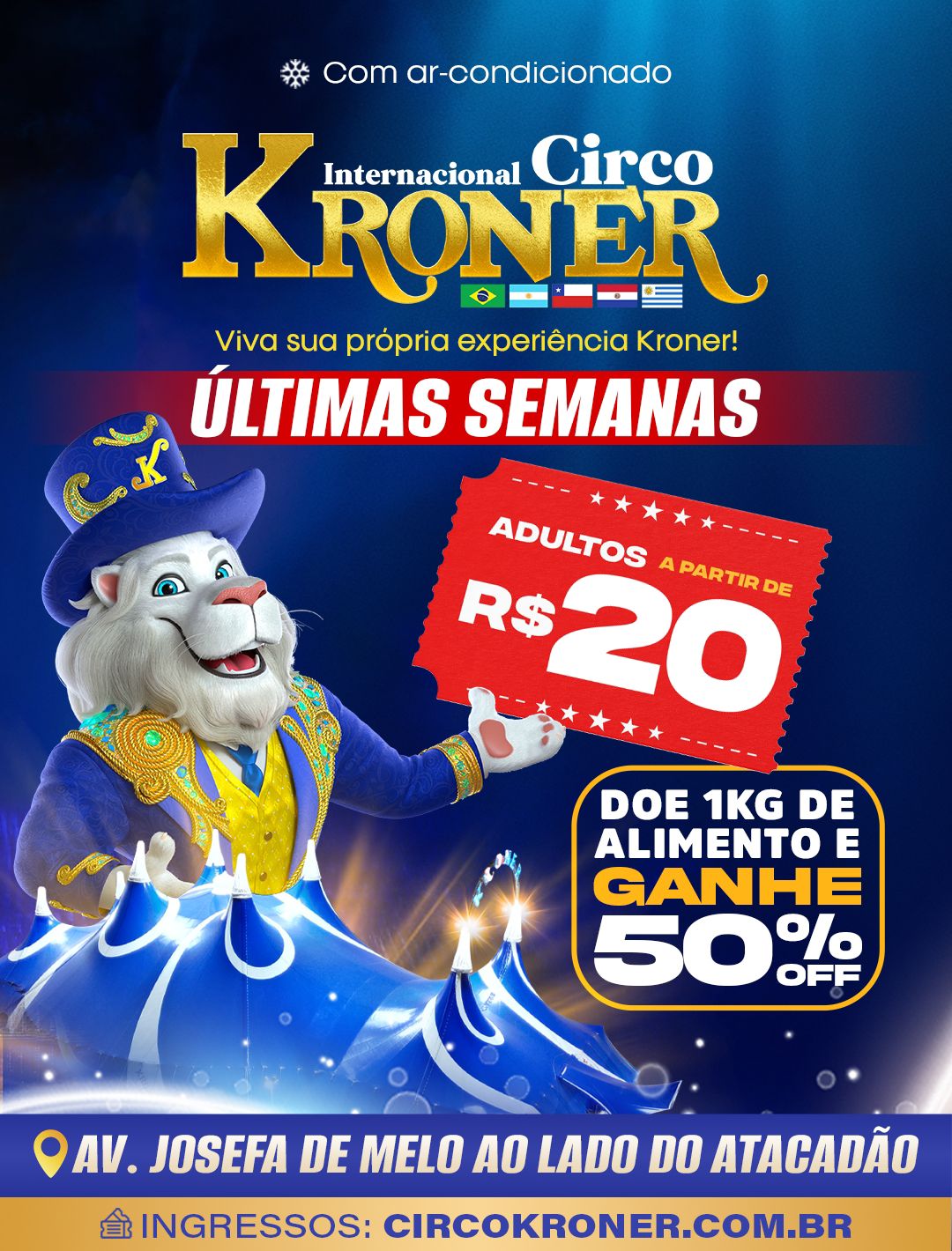 A temporada acontece na superestrutura montada na Avenida Josefa de Melo, ao lado do Atacadão, e marca as últimas semanas do Kroner na capital alagoana, reforçando o compromisso do circo em ampliar o acesso ao espetáculo e incentivar a prática da solidariedade.