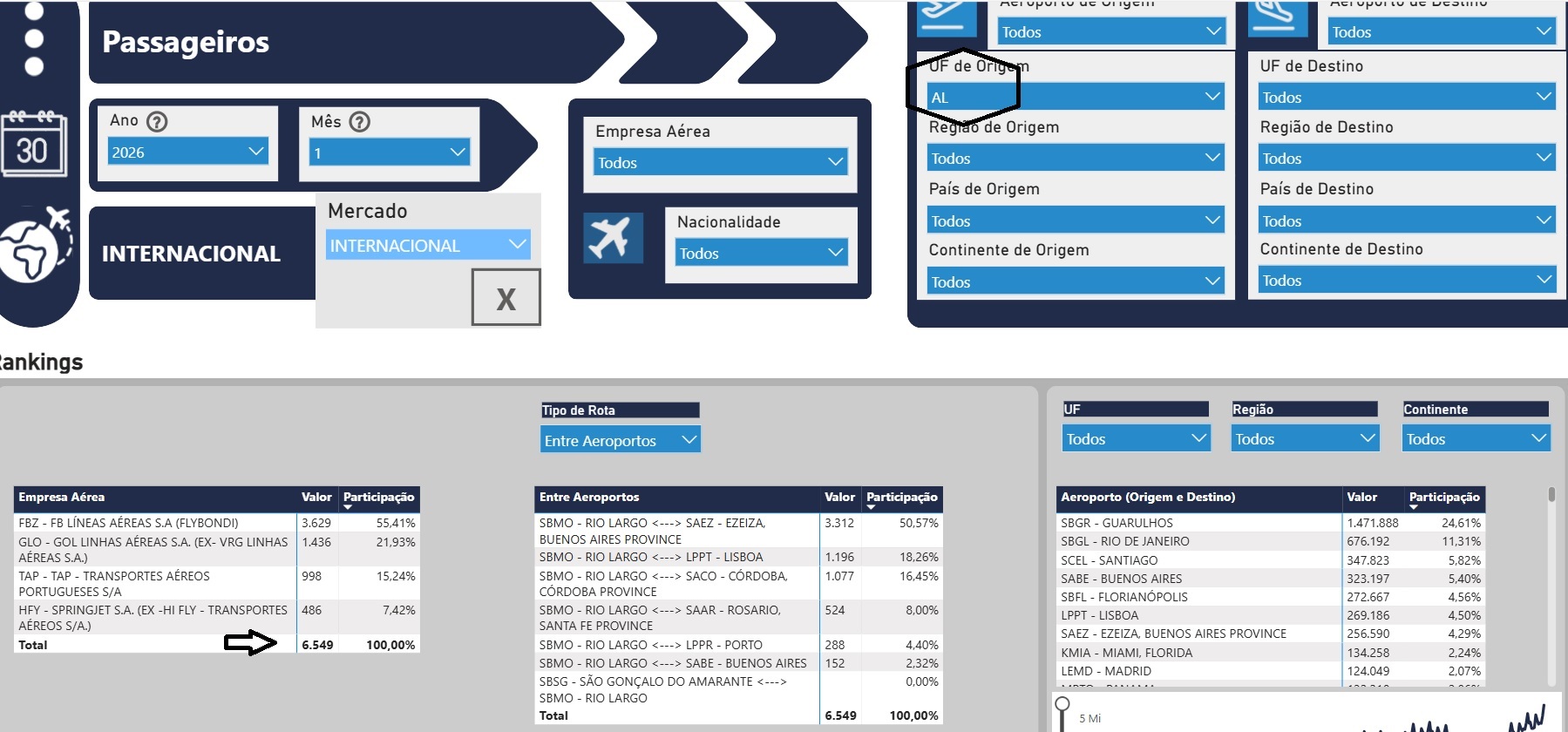 O aumento de passageiros na capital alagoana é resultado dos voos lançados pela Flybondi, companhia de baixo custo da Argentina. O número de embarques de Maceió para Buenos Aires, Rosário e Córdoba chegou a 5.065 em janeiro de 2026.