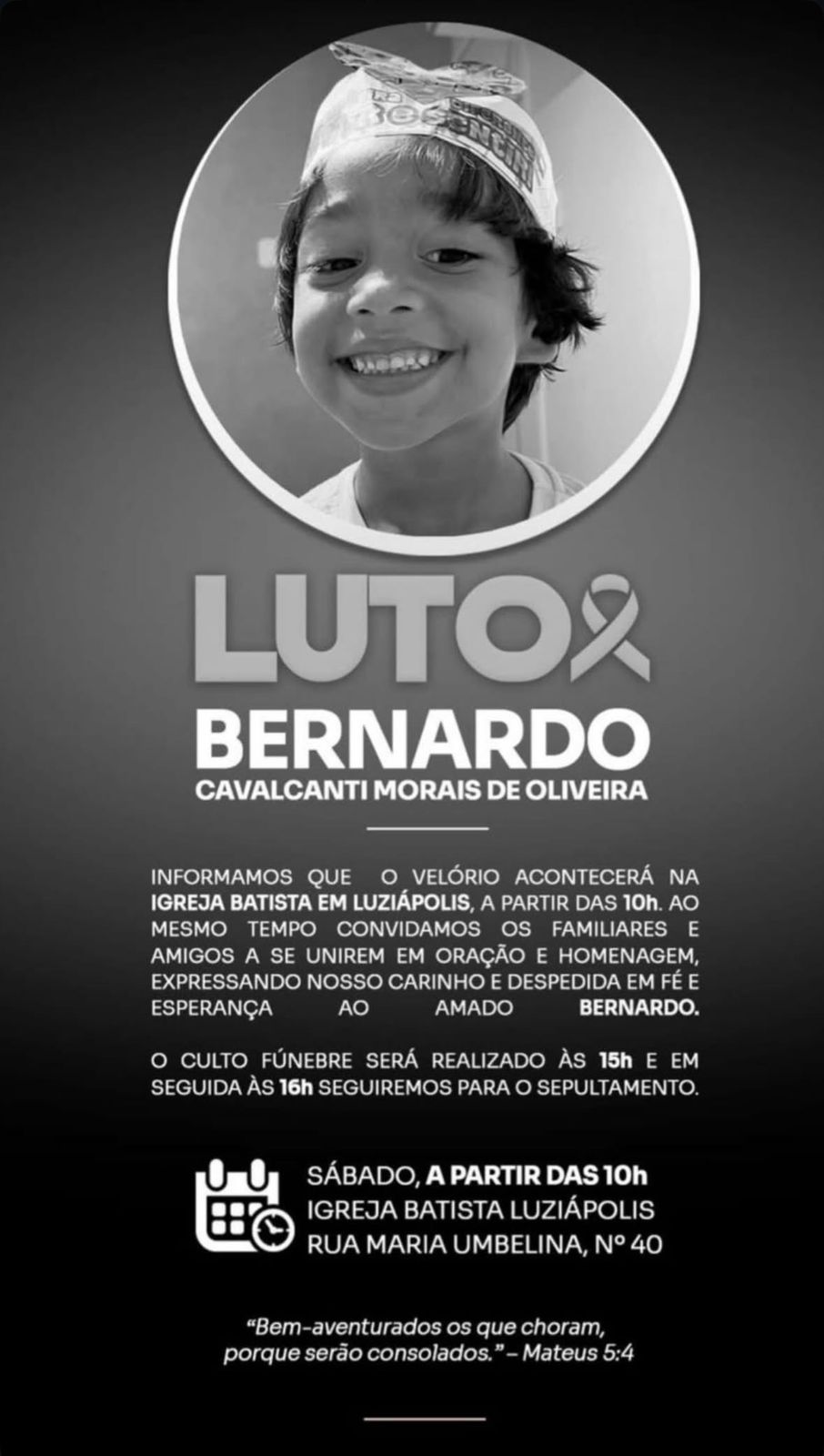 O menino Bernardo Cavalcanti Morais de Oliveira, de apenas cinco anos, morreu nessa sexta-feira (20), após passar quatro dias internado em estado grave no Hospital Geral do Estado (HGE), em Maceió.