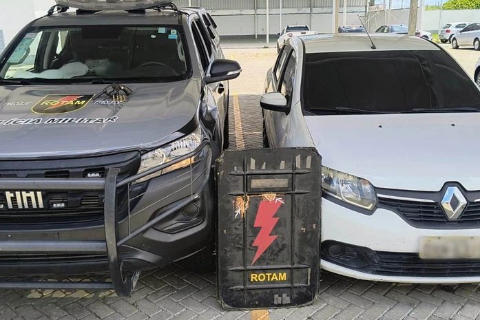 No local, os militares encontraram um Renault Logan branco estacionado em frente à residência. Segundo a corporação, o veículo teria sido visto em imagens relacionadas a crimes atribuídos ao suspeito.