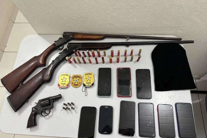Durante a operação, os policiais apreenderam um revólver com um dos investigados. A suspeita é de que a arma tenha sido utilizada no crime. Além disso, uma espingarda e munições também foram encontradas, o que resultou na lavratura de um auto de prisão em flagrante por porte ilegal de arma de fogo.