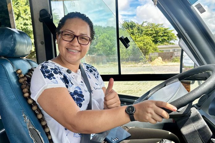 Ao assumir o volante de um micro-ônibus, a auxiliar administrativa reafirma um desejo antigo: ampliar horizontes. “De primeira, quando eu cheguei aqui, eu achei muito impactante. Até então eles ficavam olhando para você, talvez pensando: ‘O que é que essa mulher tá fazendo aqui? É muito estranho’”, contou. Ainda assim, ela não recuou. Ao contrário. Para Jamily, dar esse passo é também abrir caminho para outras mulheres. “Olhe, eu digo para qualquer mulher que não fique no comodismo e não pense que isso é só do homem. Hoje não tem mais aquele negócio: ‘Ah, isso é só um homem quem faz’. Não. Você tem capacidade suficiente de ir lá e fazer. Tem curiosidade? Vá lá e faça.”
