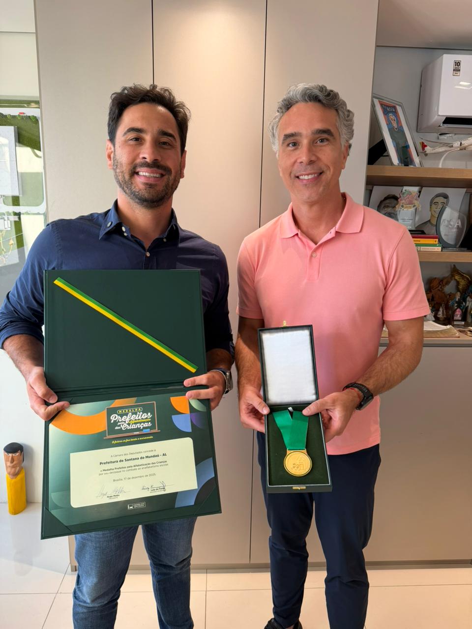 Nesta quarta-feira (11), o prefeito André Castro recebeu das mãos do deputado federal, Rafael Brito, a medalha ‘Prefeitos pela Alfabetização das Crianças’. Destinada a 78 municípios brasileiros que se destacaram no combate ao analfabetismo escolar, em Alagoas, apenas Santana do Mundaú e mais dois municípios foram agraciados com a honraria concedida pea Câmara dos Deputados.