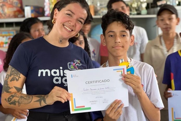 Alunos da Escola Municipal de Educação Básica Joaquim Gomes, localizada no Povoado Lagoinha, zona rural de Traipu, concluíram, nesta quinta-feira (26), a Capacitação em Tecnologia Google, promovida através de uma parceria entre a Prefeitura e a ABCSA, e realizada pelo Projeto Mais Ação.