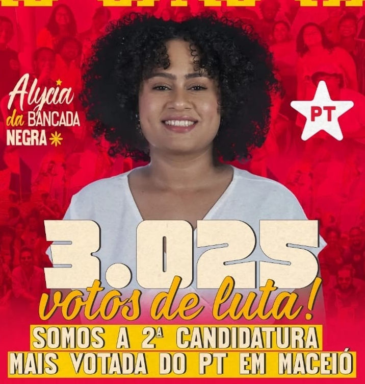 Vale dizer, que com recursos parcos, nas eleições de 2022, Alycia chamou para si a segunda maior votação do PT em Maceió.