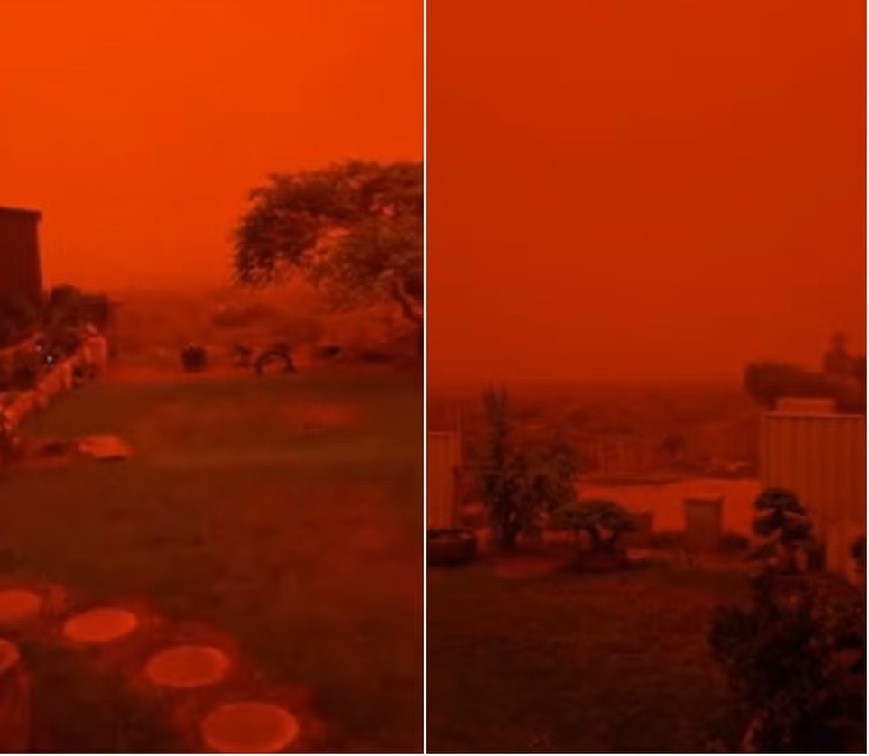 Imagens virais nas redes sociais mostram o céu da Austrália completamente vermelho. Não é IA e nem filtro: o fenômeno foi registrado após a passagem do ciclone tropical Narelle.