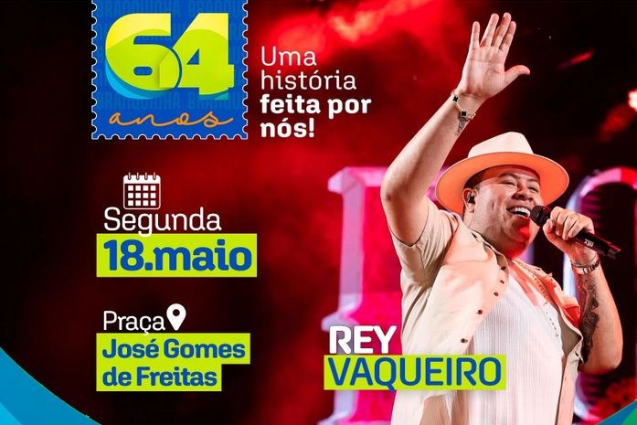 Celebrando 64 anos de história no próximo mês de maio, a prefeitura de Branquinha acaba de anunciar a primeira atração da grade artística do dia 18: o cantor Rey Vaqueiro. Com um forró diferenciado e dono de um repertório cheio de hits como “Body Splash”, “Estrela”, “Bem-vinda ao Meu Mundo”, entre outros, o cantor promete colocar todo mundo pra dançar na Praça José Gomes de Freitas - centro da cidade.