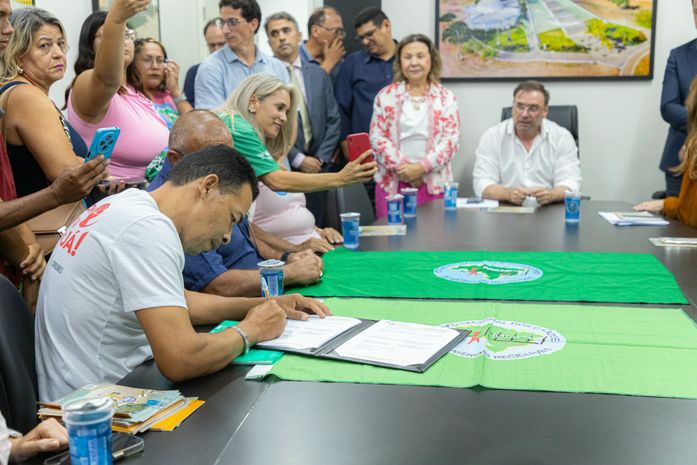 Na tarde desta quinta-feira (16), em solenidade ocorrida no Centro Administrativo Municipal, foi assinado o Termo de Cooperação com Organizações da Sociedade Civil, Associações e Cooperativa de Materiais Recicláveis para a coleta seletiva porta a porta na cidade.