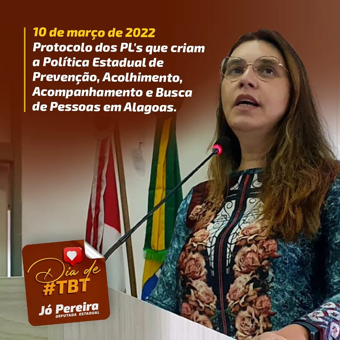 Na caminhada de diálogos um apoio importante foi , no ano de 2022, da então deputada, Jó Pereira, que entre providências urgentes e necessárias protocolou um projeto de Lei da Política Estadual de Prevenção, Acolhimento, Acompanhamento e Busca de Pessoas, em Alagoas, ( indicação aprovada pela Assembleia Legislativa), que além da criação da Delegacia Especializada em Pessoas Desaparecidas, tem como objetivo ser ferramenta na prevenção, procura e localização de todas as pessoas que, por alguma circunstância anormal são consideradas desaparecidas e acolhimento das famílias.