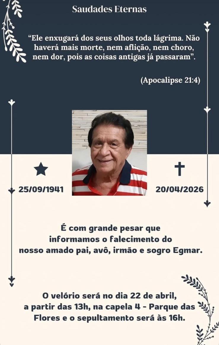 A cidade de Arapiraca amanheceu de luto com a notícia da morte do cirurgião-dentista Dr. Egmar da Rocha Barros, aos 85 anos. Bastante conhecido e respeitado no município, ele faleceu nesta terça-feira (21), deixando um legado marcado pela dedicação à odontologia e pela atuação na vida pública e comunitária.