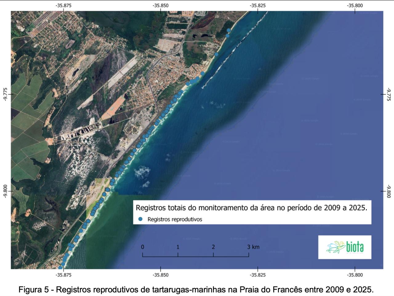 O flagrante, registrado por drone por volta das 6h, evidencia um problema recorrente no litoral alagoano: o tráfego ilegal de automóveis em áreas de preservação ambiental, colocando em risco banhistas, surfistas e espécies marinhas ameaçadas, como as tartarugas marinhas.