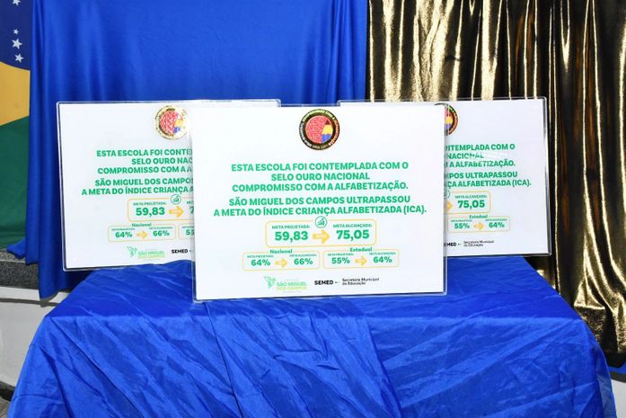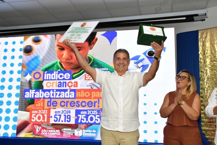 A Secretaria de Educação de São Miguel dos Campos realizou na tarde da última sexta-feira (16), a cerimônia de premiação aos profissionais referente à conquista do Selo Ouro Nacional Compromisso com a Alfabetização do MEC e também em comemoração ao Índice Criança Alfabetizada (ICA) 2025.