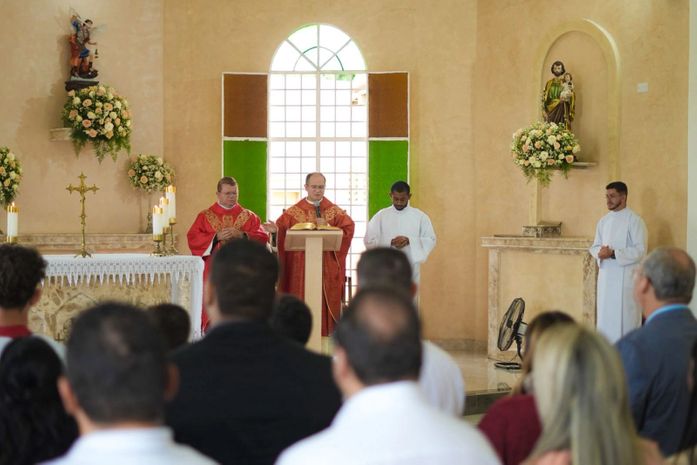 A programação teve início com a tradicional missa em ação de graças, reunindo autoridades e moradores do município. Em seguida, Lucas esteve presente no hasteamento das bandeiras, ao lado do prefeito Dário Roberto, do vice-prefeito Dr. Romário, vereadores, secretários municipais e lideranças locais.